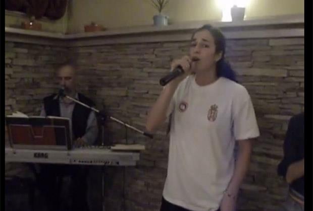 Mikrofona se latila najbolji levi bek Svetskog prvenstva Sanja Damnjanović i otpevala čuveni hit Zlate Petrović "Dođi da mi ruke greješ".