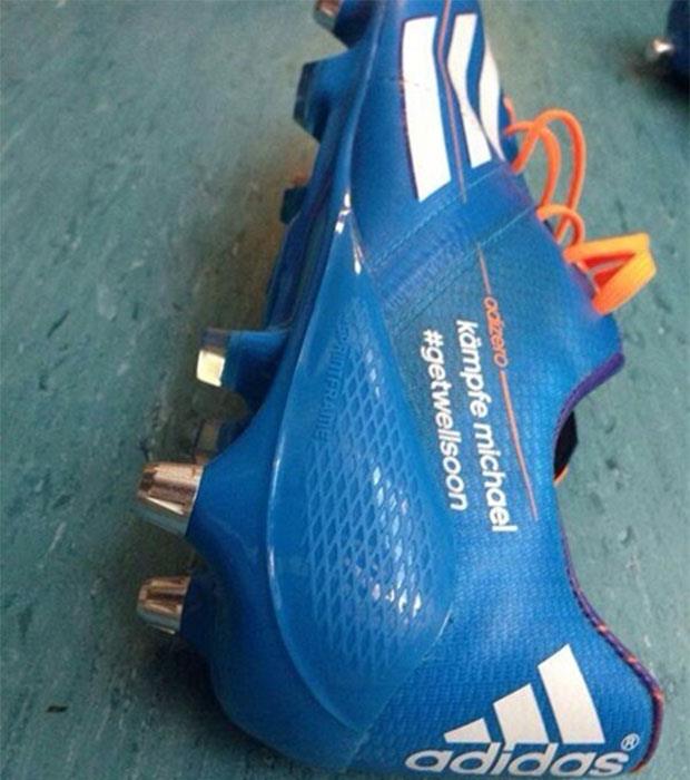 Ovoga puta, uradio je nešto slično, odnosno spremio je kopačke koje na sebi imaju boje nemačke zastave i na kojima piše: "Nastavi da se boriš Mihael".