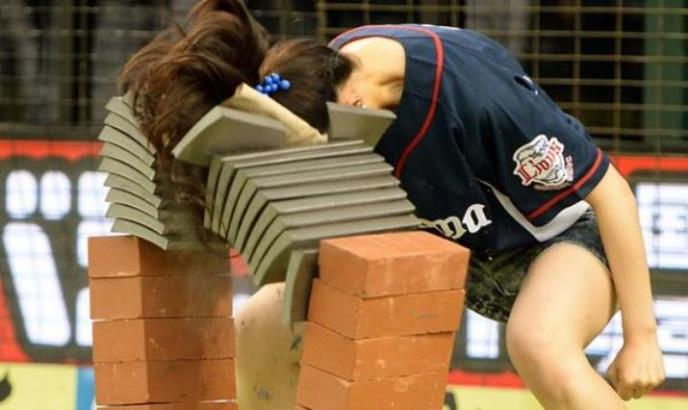 Japanska glumica Rina Takeda uoči prvog piča ušetala je u teren i glavom, tačnije čelom, razbila betonske ploče.