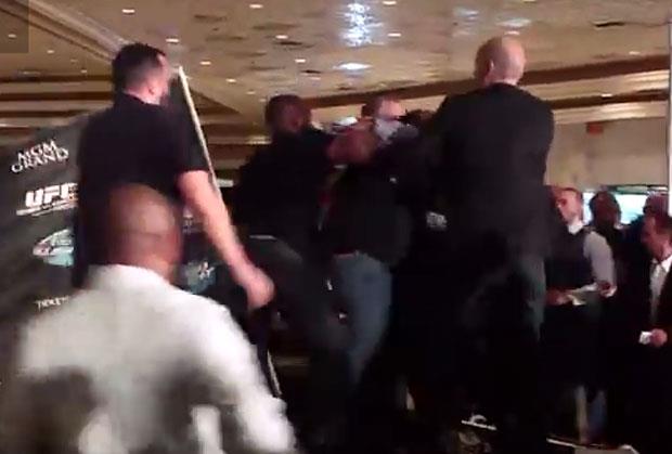 Kormije je prvi započeo sukob, pošto je aktuelnog šampiona u poluteškoj kategoriji uhvatio za vrat i odgurnuo ga, a onda mu je Džons uzvratio. Pred njima je sve padalo, a onda se uključilo obezbeđenje i sprečilo veći sukob.