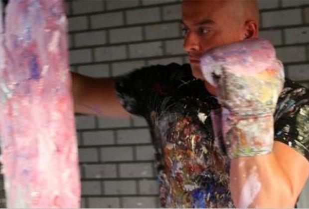 Van Polanen Petel je objasnio da prvo stavi bokserske rukavice, a onda ih umoči u boju. Holanđanin potom udara u džak koji je omotan slikarskim platnom.