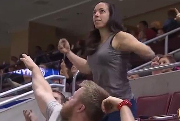 Kada je reditelj odlučio ponovo da ga pokaže pred kamerama, navijačici koja je sedela iza njega je očigledno prekipelo, te je ustala, skinula jaknu i pokazala svoje mišiće i postidela ovog hvalisavca...