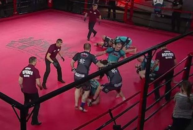 Na snimku se vidi da je ovaj sport okrutniji od ostalih borilačkih sportova. U tuču su učestvovali ruski i poljski borci.