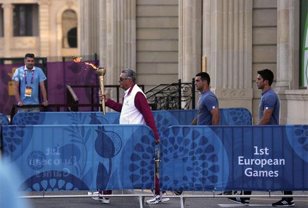 Šarenilo uniformi brojnih reprezentacija preplavilo je centar olimpijskog sela, takozvani vilidž skver, a nakon dizanja azerbejdžanske zastave i zastave Evropskog olimpijskog komiteta, na binu je stigla i olimpijska baklja, koja će do stadiona na kom će Igre biti otvorene stići pred sam početak ceremonije.