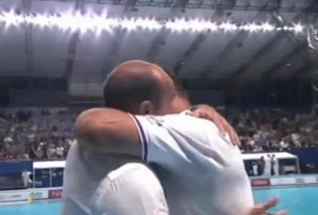 Igrači su zbijali šale na račun selektora, tvrdeći da se ugojio i da ne bi mogli da ga izvuku iz bazena, ali istinski razlog je to što je Dejan Savić džentlmen, pa je prvo morao da se pozdravi sa hrvatskim kolegom. Selektor Hrvatske Ivica Tucak i Savić su se baš iskreno zagrlili.