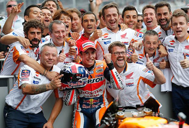BEOGRAD - Vozač Repsol Honde Španac Mark Markes pobedio je danas, treći put uzastopno, u trci MotoGP šampionata u Indijanapolisu.