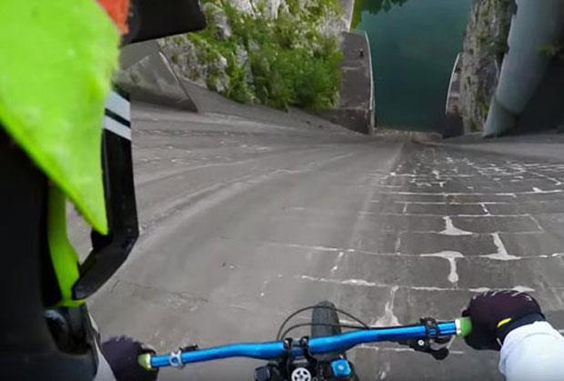 Ovaj poznati ekstremni sportista se sa kamerom na glavi spustio biciklom niz branu.