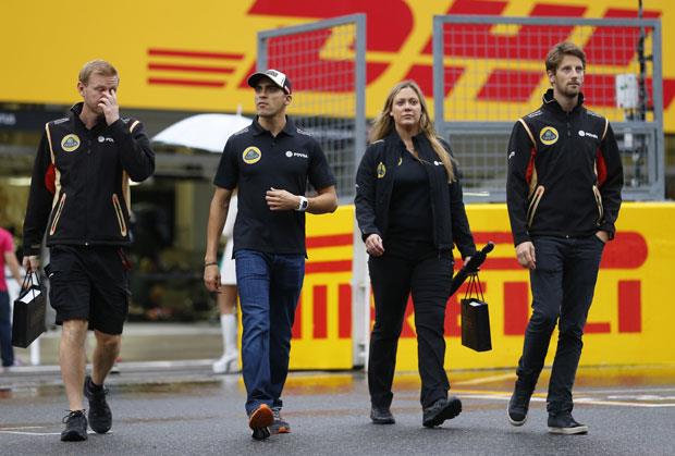 Grožan, koji je pre mesec dana osvojio treće mesto na VN Belgije, Pastor Maldonado, mehaničari i inženjeri su ostali na kiši, a zahvaljujući solidarnosti drugih timova izbegli su poniženje