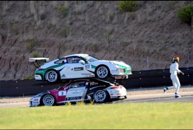 Na GT turu u Navari dogodila se pomalo bizarna nesreća, u kojoj je nakon sudara jedan automobil završio na krovu drugog.