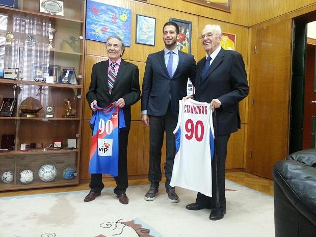 Stanković i Grozdanović stigli su u kabinet ministra ne znajući ni povod prijema, niti da će tamo biti zajedno, a Udovičić ih je dočekao sa poklonima i dresovima sa brojem 90 koji simbolično označavaju i broj godina koje su napunili u 2015.