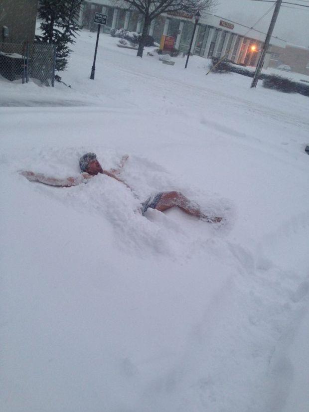 Na društvenim mrežama pojavile su se slike Srbina iz zavejanog Njujorka koji je odlučio da zlato delfina proslavi plivanjem po snegu.