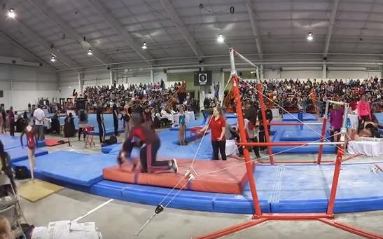 Na društvenim mrežama pojavio se snimak mlade gimnastičarke, koja je radila vežbu na vratilu. Ona je pogrešila u pokušaju da skoči na strunjaču, a trener je napravio paradu i spasao je da ne slomi vrat.