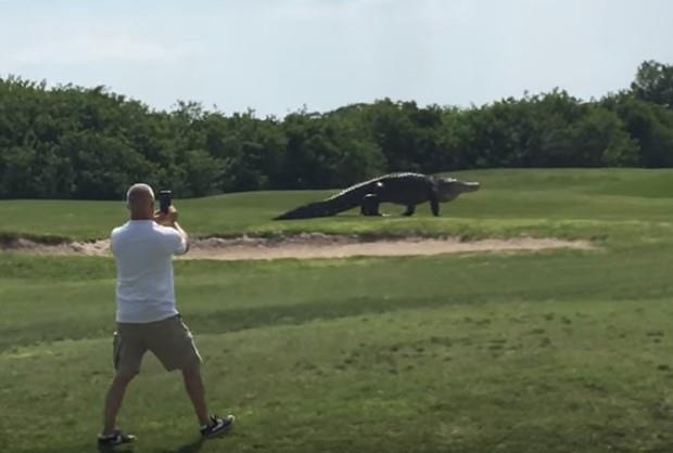 Džinovski aligator privukao je svetsku pažnju pošto su ga igrači golfa u američkoj saveznoj državi Floridi snimili i postavili video klip na internet.