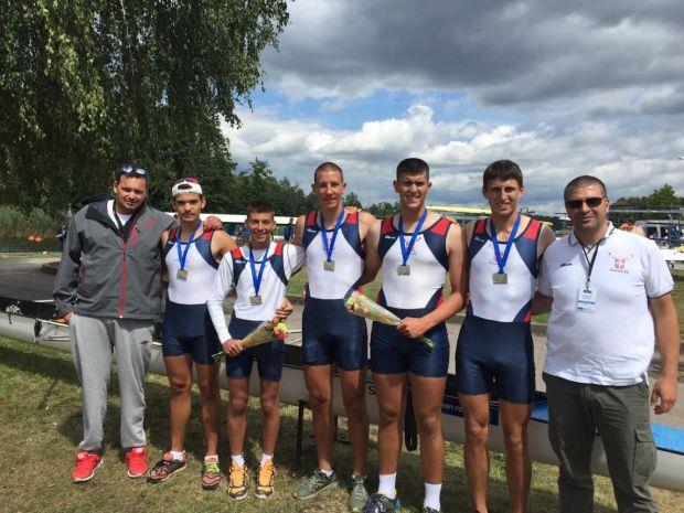 Srpski četverac Vuk Mladenović, Veselin Tričković, Vanja Obradović, Damjan Lazić i kormilar Luka Mladenović osvojio je srebrnu medalju na Evropskom prvenstvu u veslanju za juniore u Trakaiju.