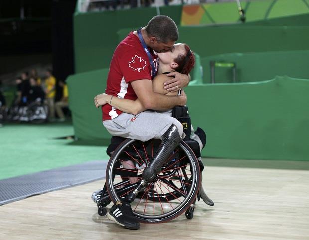 Reč je o članovima kanadskih košarkaških reprezentacija na Paraolimpijskim igrama, supružnicima Adamu Lanči i Džejmi Dževels, a ovaj vatreni poljubac dogodio se posle meča u kome su kanadske košarkašice savladale Kinu.