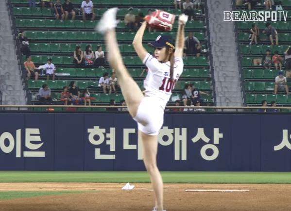 Čoi Seol Hva je 10 godina trenirala balet, a prihvatila je poziv da izvede bacanje na jednoj bejzbol utakmici.