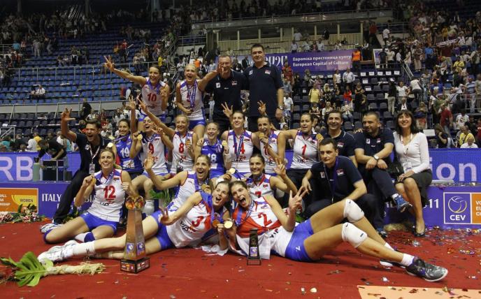 Seniorke Srbije su 2. oktobra 2011, u finalu 27. Evropskog prvenstva 2011. - “Odbojka spaja”, u dvorani Pionir u Beogradu u prisustvu 9000 gledalaca, savladale Nemačku sa 3:2, po setovima 16:25, 25:20, 19:25, 25:20 i 15:9, posle 125 minuta igre.