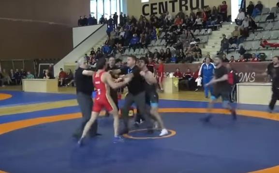 Meč između gruzijskog rvača Zuraba Datunašvilija i Rusa Imila Šarafetdinova u kategoriji do 80 kilograma na Kupu evropskih nacija završen je masovnom tučom.