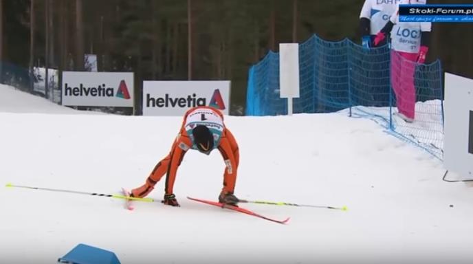 Od starta! Kada je umalo pao sa skija, a da još nije ni krenuo. Zatim je tokom trke imao nepravilan položaj tela, padao je nekoliko puta, odmarao se uz kraj staze, rizikujući da rivali koji su ga obilazili nalete na njega.