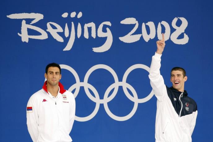 Felps je jednu od svojih zlatnih olimpijskih medalja osvojio 2008. u Pekingu u finalu trke na 100 metara delfin stilom iako je Čavić prvi stigao na cilj, ali je, kako je i sama "Omega", zvanični merač vremena, priznala, Amerikanac je jače pritisnuo taster pa je proglašen pobednikom.