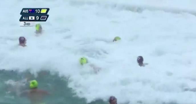 I dok su se majstori vaterpola borili u vodi, talasi su ih zapljuskivali. Bilo je i ogromnih talasa koji su prekidali igru.
