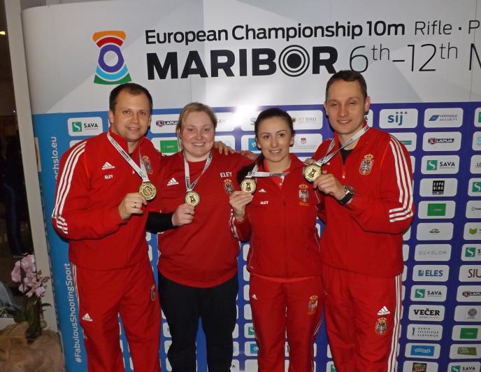 Srpski reprezentativci u streljaštvu u mešovitim parovima pištoljem i puškom odbranili su zlatne medalje na Evropskom prvenstvu vazdušnim oružjem u Mariboru.