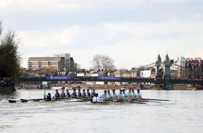 Godišnja trka osmeraca Oksforda i Kembridža, 163. po redu, održana je u popodnevnim časovima na stazi dugoj 6,8 kilometara. Prvi put trka je održana 1829. godine, a od 1856. godine održava se svake godine, izuzev za vreme Prvog i Drugog svetskog rata. Veslači Kembridža su do sada ostvarili 82 pobede, a njihovi protivnici iz Oksforda 79, dok je jedna trka završena nerešeno.