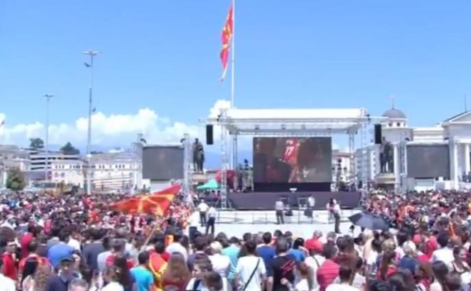 Pre ulaska na centralni gradski trg, rukometaši Vardara su prošli kroz trijumfalnu kapiju "Porta Makedonija". Rukometaši su na Trgu Makedonije dočekani ovacijama.