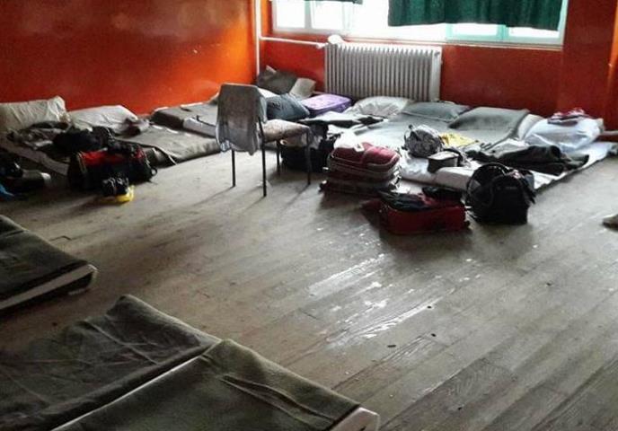 Na slikama se vidi da su dušeci postavljeni jedan pored drugog na parketu jedne velike prostorije, dok su ležaji prekriveni raznim insektima.