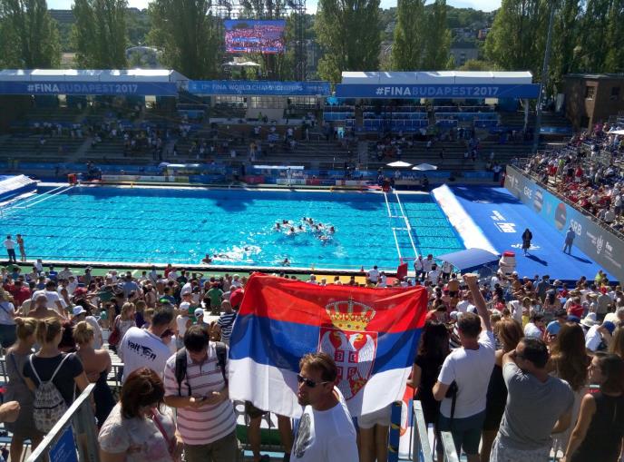 Radost su na bazenu u Budimpešti podelili sa nekoliko stotina srpskih navijača.