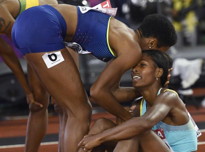 Najveća tragičarka trke na 400 metara svakako je olimpijska pobednica iz Rija, Šaunae Miler-Uibo (23) koja je kroz cilj pretrčaka kao četvrta iako je sve vreme vodila i mnogi su zlatno odličje već videli na njenim grudima. Na 370. metru ju je uhvatio grč, polako je posustajala, nije se predavala, ali je ipak ispustila medalju.