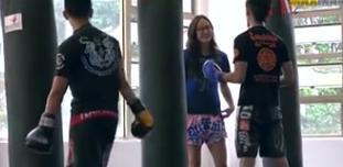 No, ona je otišla još dalje, pa je pitala momke koji su trenirali da li bi mogla da im sparinguje. Mišićavi momci su je upozorili da bi mogli da je povrede, ali je ona insistirala da hoće da proba.
