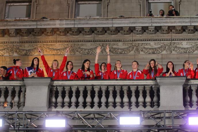 Naše heroine nisu krile euforiju dok su se obraćale prisutnim navijačima na platou ispred Starog dvora.