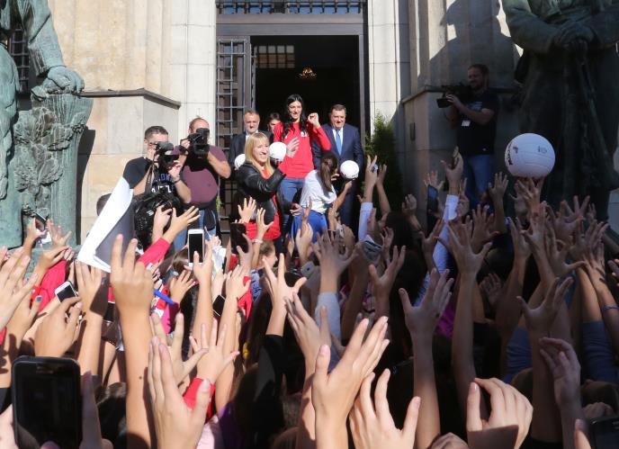 Više stotina članova odbojkaških klubova iz Republike Srpske dočekalo je u u centru Banjaluke odbojkašice reprezentacije Srbije Tijanu Bošković i Brankicu Mihajlović, koje su osvojile zlatnu medalju na Evropskom prvenstvu.
