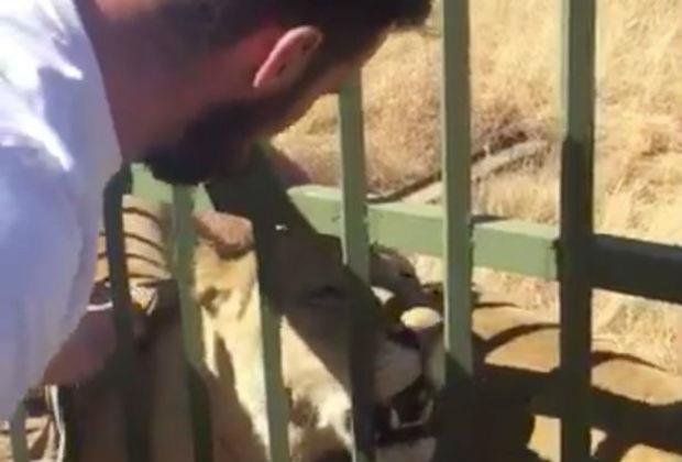 On je ignorisao upozorenje domaćina i kroz ogradu mazio lava po glavi.
