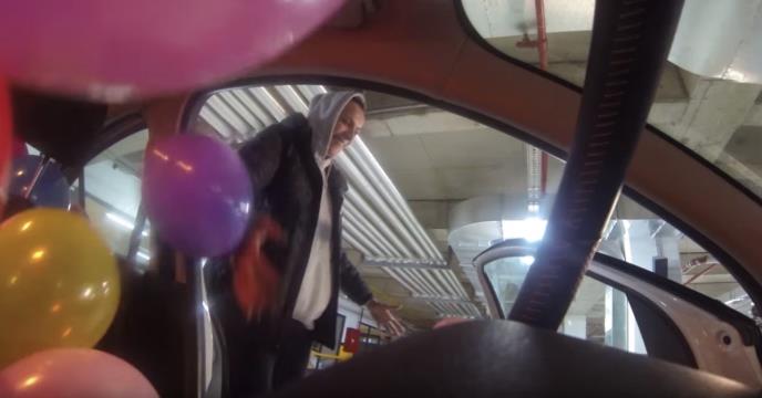 Kada je došla do auta Rašićeva nije odmah primetila da su sedišta puna balona. Odložila je stvari u prtljažnik i krenula da uđe u auto. Tada je primetila da se nešto desili. Prasnula je u smeh, otključala je auto i krenula da vadi balone, kako bi mogla da sedne i odveze se.