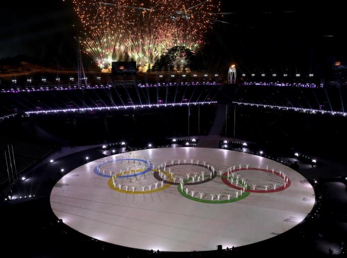 Na početku ceremonije na Olimpijskom stadionu u Pjongčangu viđena je kratka predstava na ledu uz vatromet, a zatim je intonirana himna domaćina Južne Koreje.