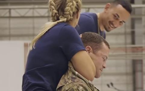 Seksi Pejdž Van Zant pokazivala je kako na najlakši način 'ugušite' napadača, te je tu vežbu izvela na jednom marincu.
