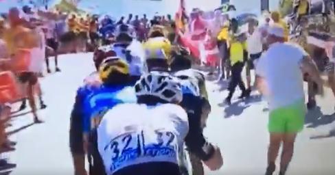 Mučka scena stiže nam sa Tur d Fransa kada je jedan navijač preskočio ogradu i krenuo da udara jednog od favorita u ovoj trci.