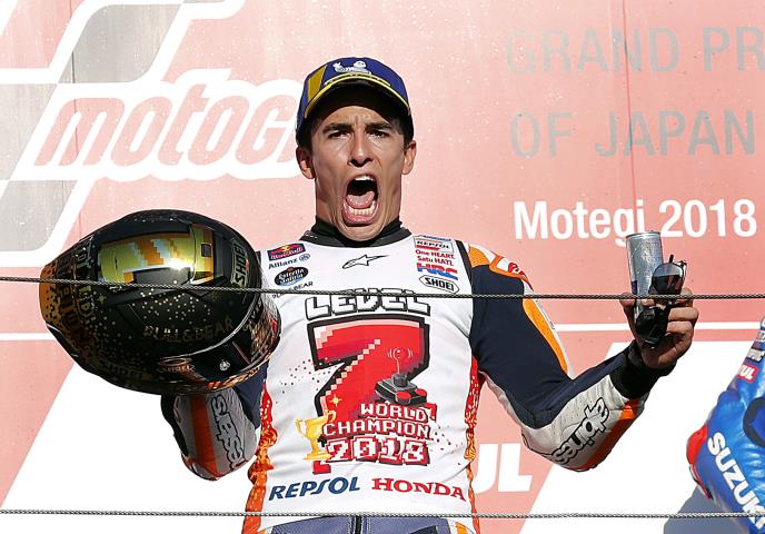 Mladi Španac Mark Markez, vozač Honde, pobedio je danas na trci za VN Japana u moto GP šampionatu i obezbedio novu šampionsku titulu, sedmu u karijeri, a petu u kraljevskoj kategoriji .