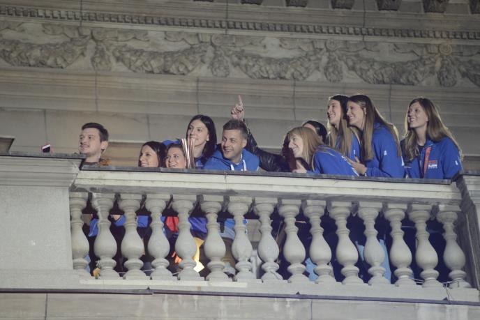Predvođene selektorom Zoranom Terzićem i kapitenom Majom Ognjenović, zlatne devojke su se večeras pojavile na čuvenom balkonu Skupštine grada.