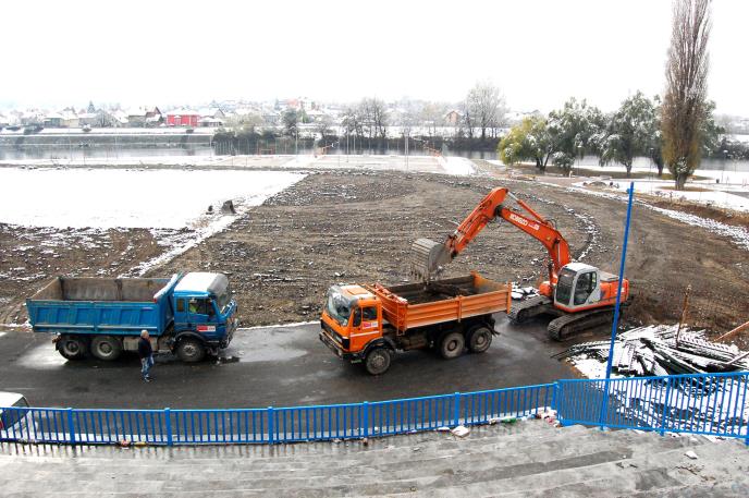 Sneg koji je prošle noći pao na području Grada Kraljeva nije se zadržao pri tlu u tolikoj meri da onemogući nastavak radova na rekonstrukciji Atletskog stadiona u ovom gradu, koja je započeta u oktobru, a radovi bi trebalo da budu završeni u narednih pet meseci.