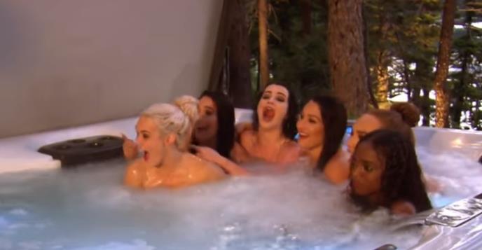 Američke rvačice su potpuno gole, sa flašama alkoholnih pića u svojim rukama i oko đakuzija...
