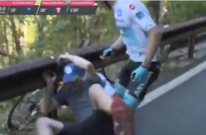 SKANDAL NA ĐIRU! Biciklista tukao navijača tokom velike trke kroz Italiju! (VIDEO)