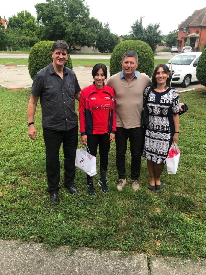 Potpredsednik Olimpijskog komiteta Srbije Žarko Zečević i direktor Atletskog saveza Srbije Slobodan Branković bili su danas u Malom Iđošu u poseti mladoj talentovanoj atletičarki, bacačici koplja Adrijani Vilagoš i njenoj majci Đerđi.