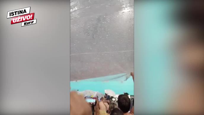LUDO U BAZENU, LUDO NA TRIBINAMA: Ovako su srpski navijači po nevremenu bodrili Delfine do trijumfa nad Hrvatskom (KURIR TV)