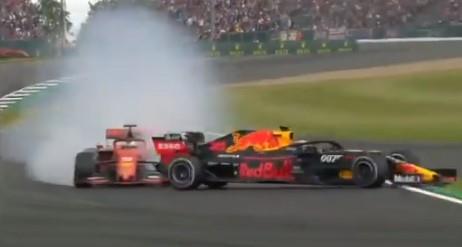 Nemački vozač iz Ferarija Sebastijan Fetel udario je Holanđanina iz Red Bula Maksa Verštapena u 38. krugu trka na stazi Silverston za Veliku nagradu Velike Britanije.