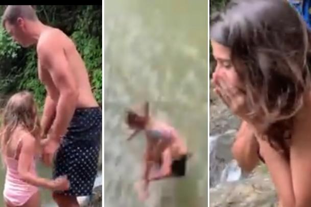 Srećom, sve se dobro završilo i devojčica je iz ovog skoka izašla bez povreda, a skandalozan snimak ponosni tata Tom je okačio na društvene mreže uz komentar: