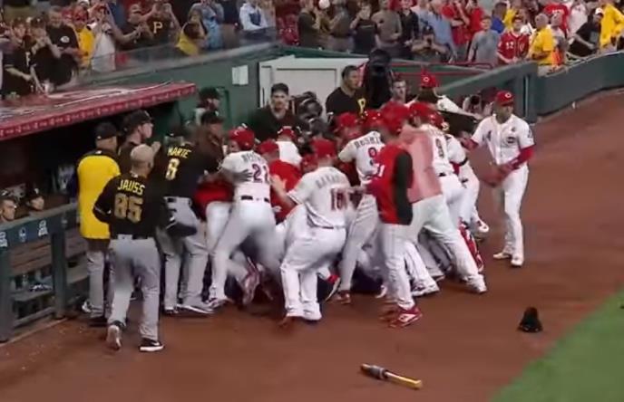 Napetost je počela da raste kada je Kela iz Pitsburga lopticu bacio u pravcu glave Ditriha iz Sinsinatija. Došlo je do koškanja njih dvojice, a do opšte tuče je došlo kada se domaći igrač Geret ka klupi "pirata".
