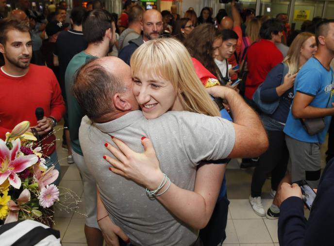 Aktuelne svetske i evropske šampionke dočekali su mnogobrojni navijači i rodbina, koji su ih pozdravili aplauzom i ovacijama uz povike "Srbija, Srbija".